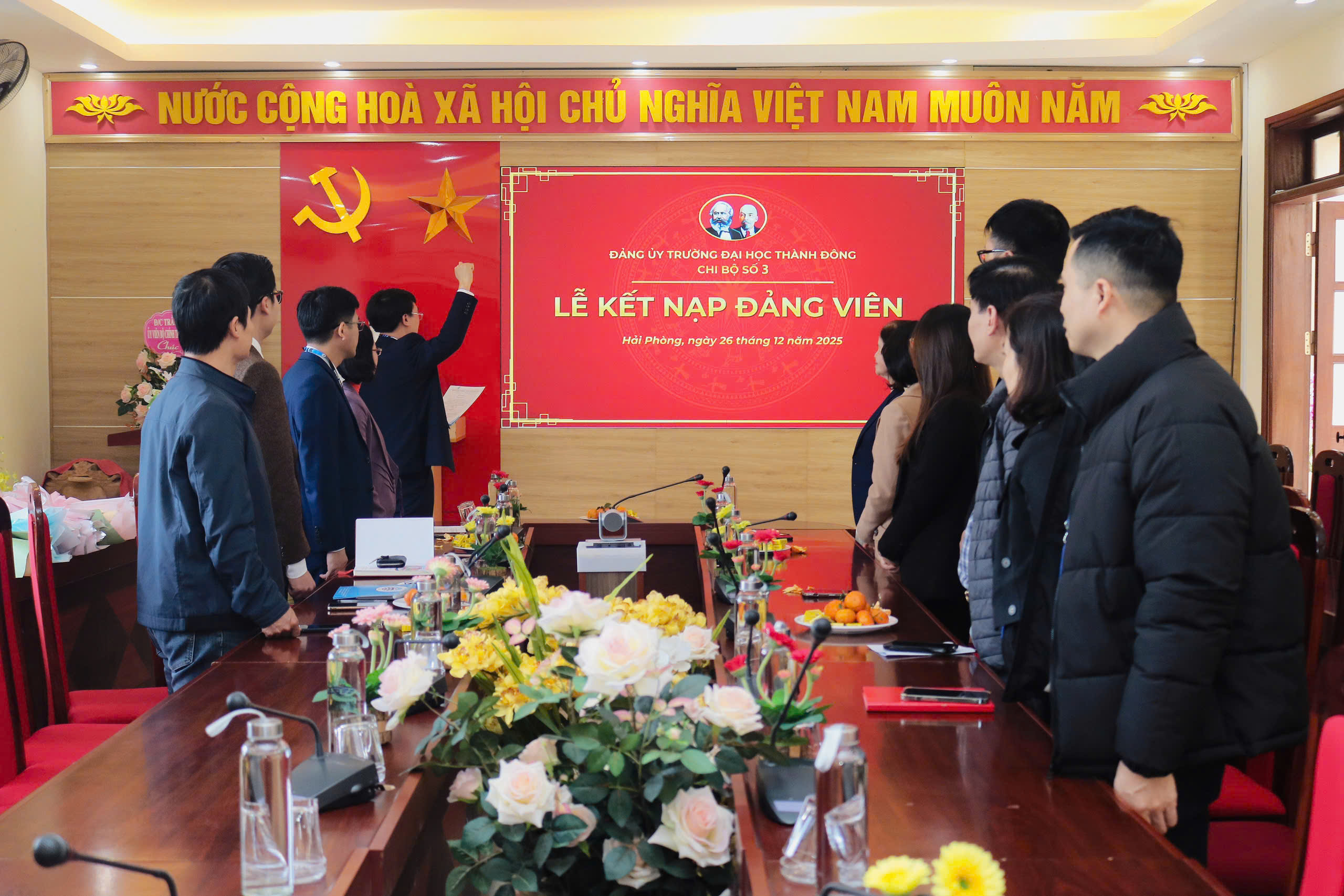 Thực hiện Điều lệ Đảng Cộng sản Việt Nam và kế hoạch công tác xây dựng Đảng năm 2025, ngày 29 tháng 12 năm 2025, Chi bộ Trường Đại học Thành Đông đã long trọng tổ chức Lễ kết nạp Đảng viên cho quần chúng ưu tú là đồng chí Phạm Văn Tuyên - Trưởng khoa Khoa Quản lý đất đai.