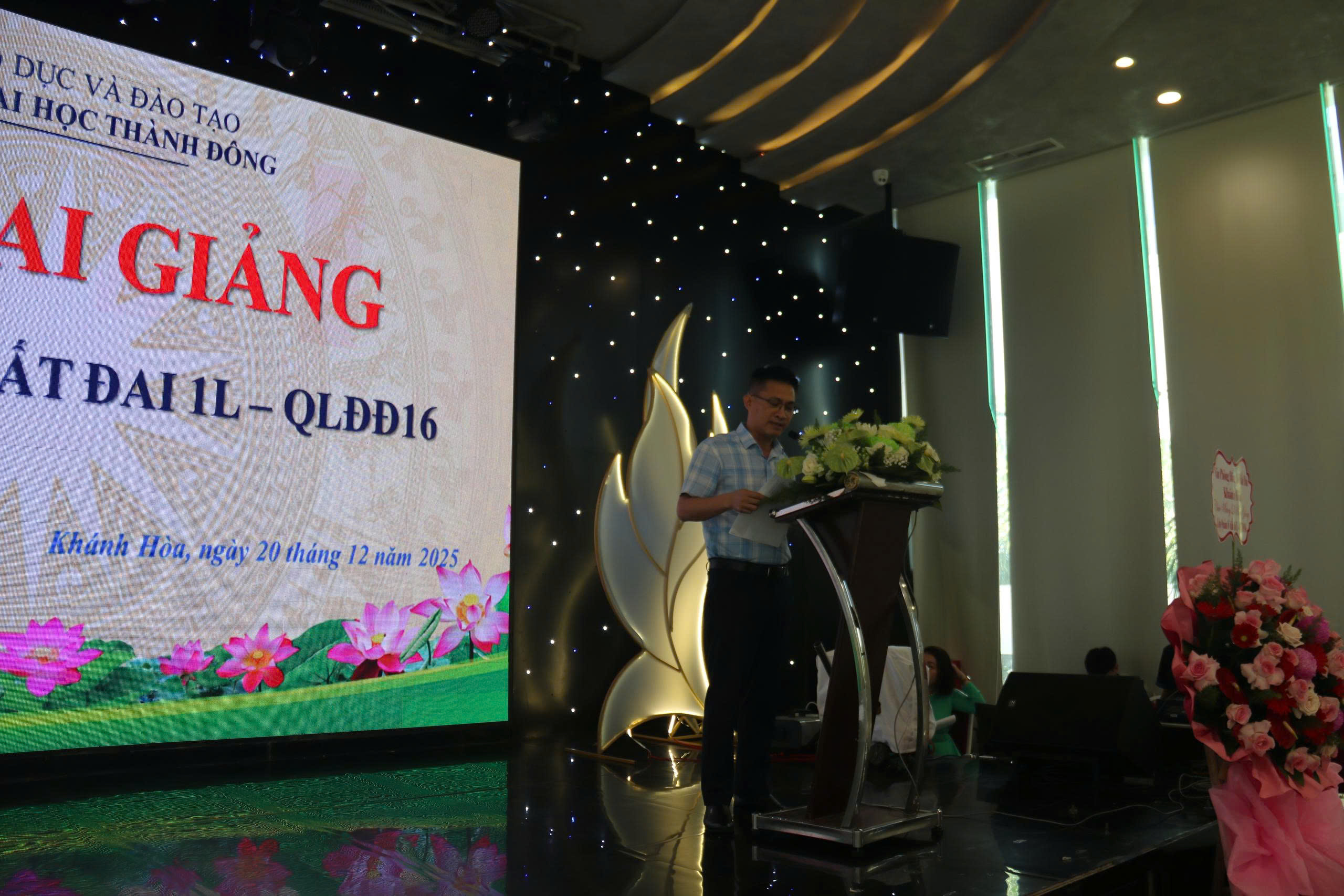 Ngày 20/12/2025, Khoa Quản lý đất đai – Trường Đại học Thành Đông đã long trọng tổ chức Lễ Khai giảng lớp Quản lý đất đai. Buổi lễ diễn ra trong không khí trang trọng, nghiêm túc, đánh dấu sự khởi đầu của một khóa học có ý nghĩa quan trọng trong công tác đào tạo, bồi dưỡng nguồn nhân lực quản lý đất đai, đáp ứng yêu cầu đổi mới tổ chức bộ máy và nâng cao hiệu lực, hiệu quả quản lý nhà nước trong giai đoạn hiện nay.